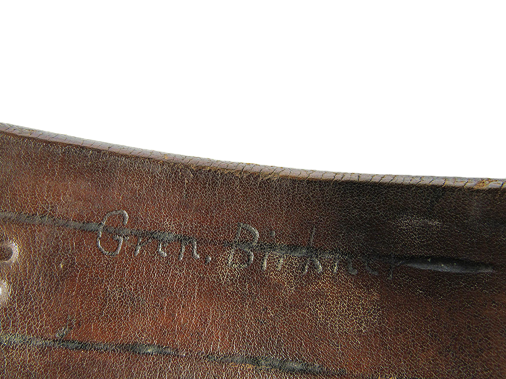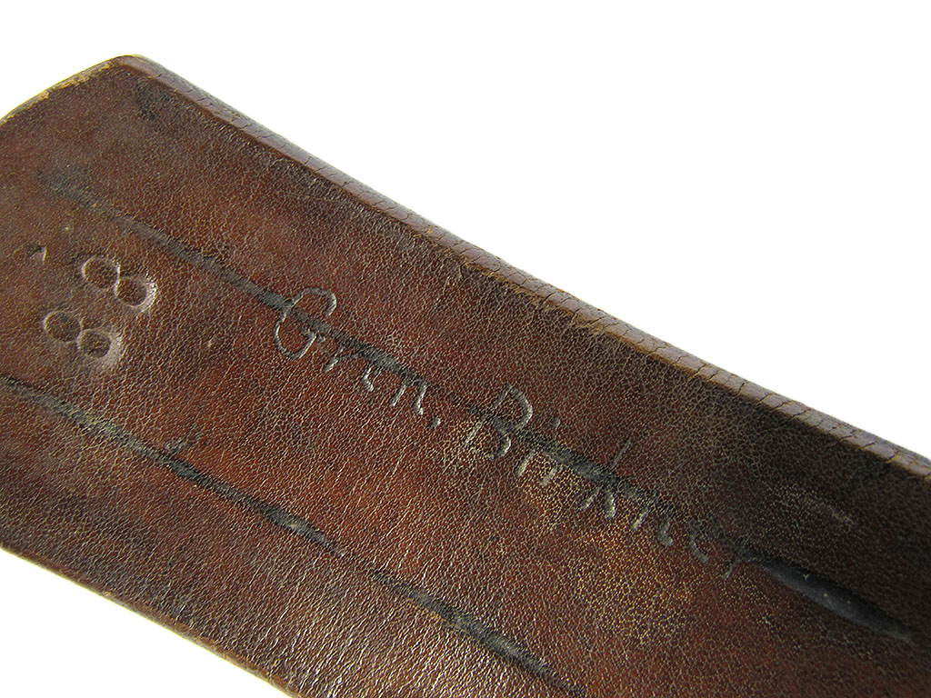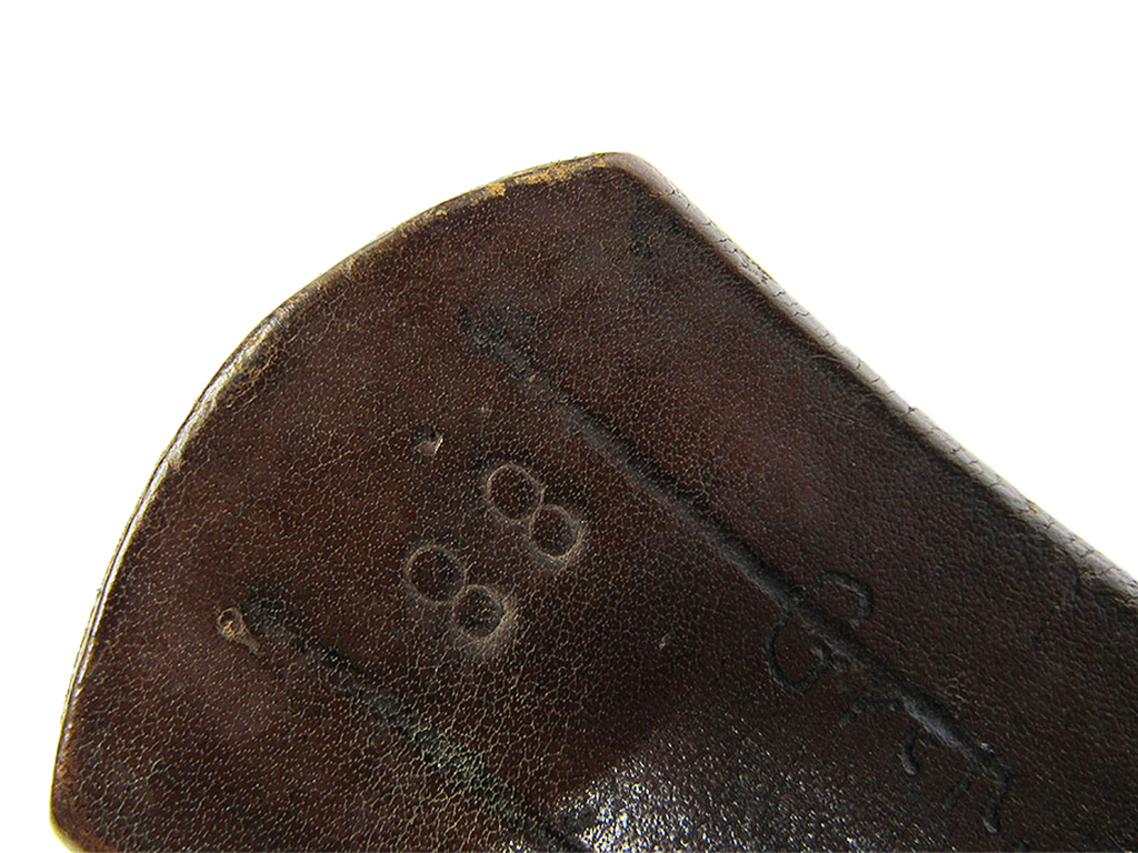 金具側の裏面皮にスタンプ有りますが難読です。使用者の手書き名前有り。
