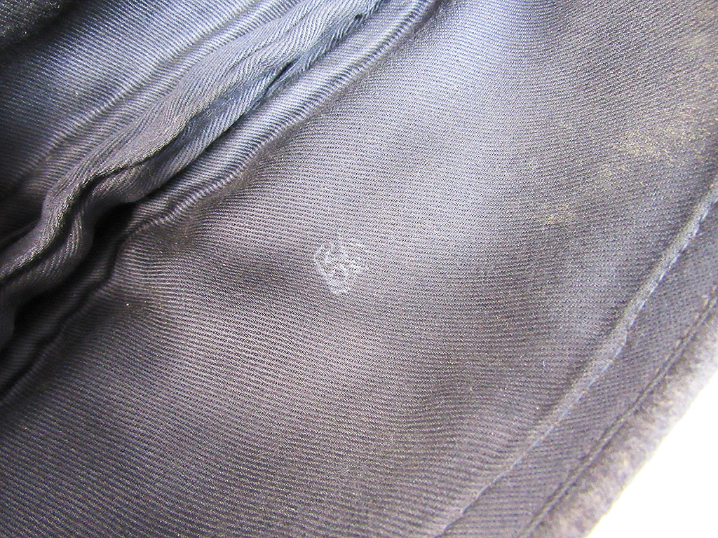 裏地はブルーグレーの綿生地 サイズ56の白いスタンプが有ります。