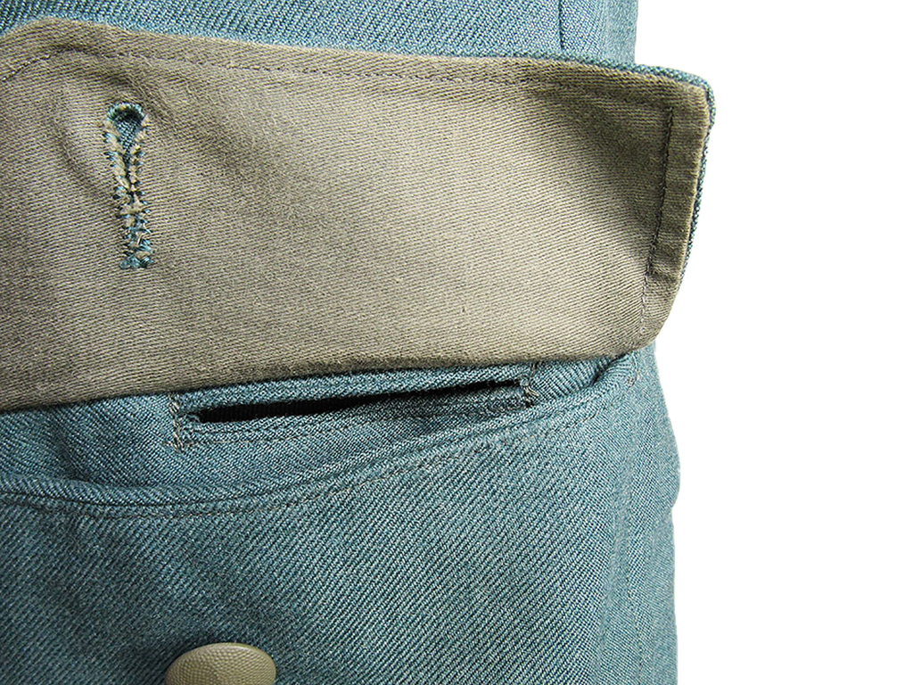 表の生地はブルーがかった薄手で目の細かな斜め生地