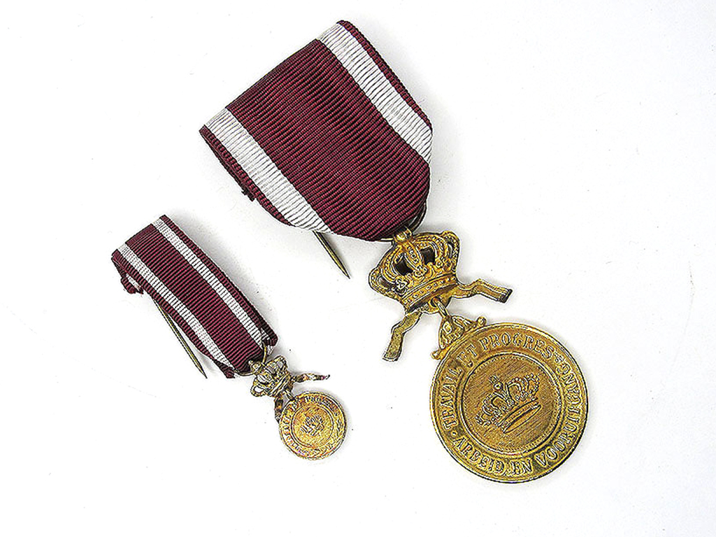 - ベルギー 王冠勲章 F/S ゴールドメダル ミニチュア付 箱入