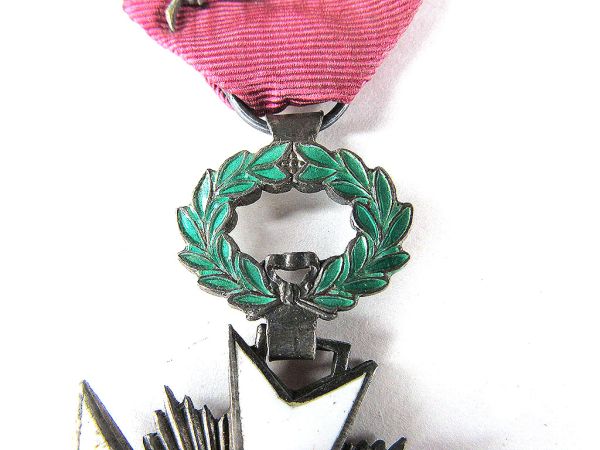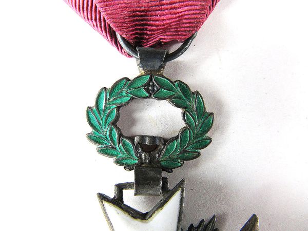 - 等級:5つの等級(大十字、大将校、司令官、将校、騎士)と2つの椰子葉章、3つのメダル(金、銀、銅)があります。画像のリボンの形状から、これは将校級(リボンにロゼットが付く)か騎士級(リボンのみ)の可能性があります。